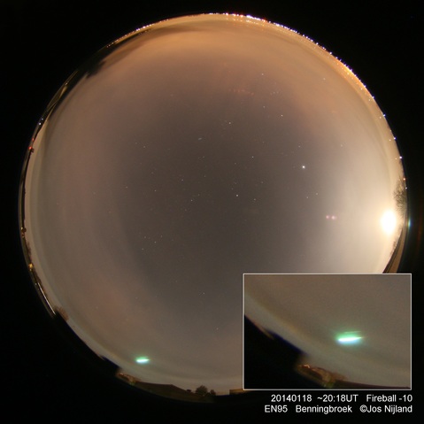 Op zaterdagavond 18 januari was rond 21.18 uur vanuit vrijwel heel Nederland een extreem heldere vuurbol te zien. Wat is een vuurbol? De werkgroep ontving via het online meldpunt meer dan 60 waarnemingen van de vuurbol. Dit is extreem veel. Ook in de diverse media en op twitter is de vuurbol trending topic. Vermoedelijk is een eventueel restant van de vuurbol in de Noordzee gevallen. Verschillende all-sky posten hebben de vuurbol geregistreerd. Of er meer onderzoek naar de vuurbol kan worden gedaan; o.a. baanbepaling is nog onduidelijk.