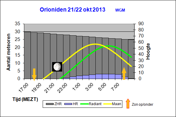 De meteorenzwerm van de Orioniden bereikt rond deze dagen zijn maximum. Uit onderzoek blijkt dat de ZHR (de maximale uurfrequentie onder ideale omstandigheden) van de Orioniden sterk kan variëren. Gemiddeld ligt de ZHR rond de 25, maar de laatste jaren was de activiteit een stuk hoger. In 2006 en 2007 bereikte de zwerm een maximale ZHR van rond de 60. De laatste jaren is deze helaas weer teruggelopen tot 30 à 40. Een sterke verhoging wordt dit jaar daarom niet verwacht, maar er is altijd een kans op verrassingen.